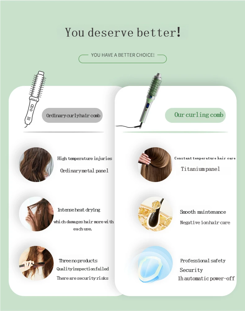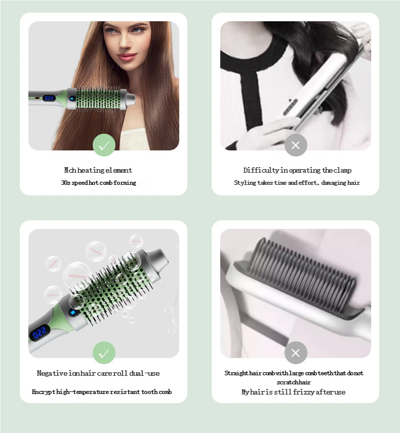 Tired of frizzy, damaged hair from traditional styling tools?Our Multifunctional Hair Curling Brush is here to revolutionize your hair routine!